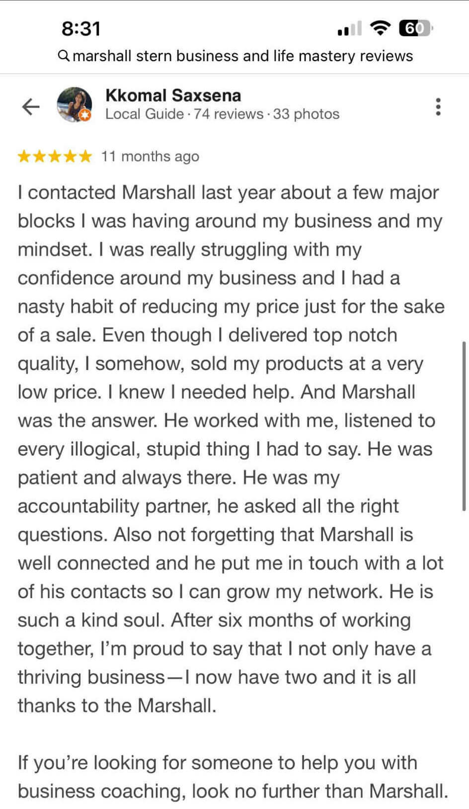 Marshall Stern isn’t your typical business coach. With over 35 years of real-world entrepreneurial experience, he’s been in the trenches himself - building, scaling, and leading companies long before “coaching” was trendy. What sets Marshall apart is simple: he truly cares about seeing people succeed.
